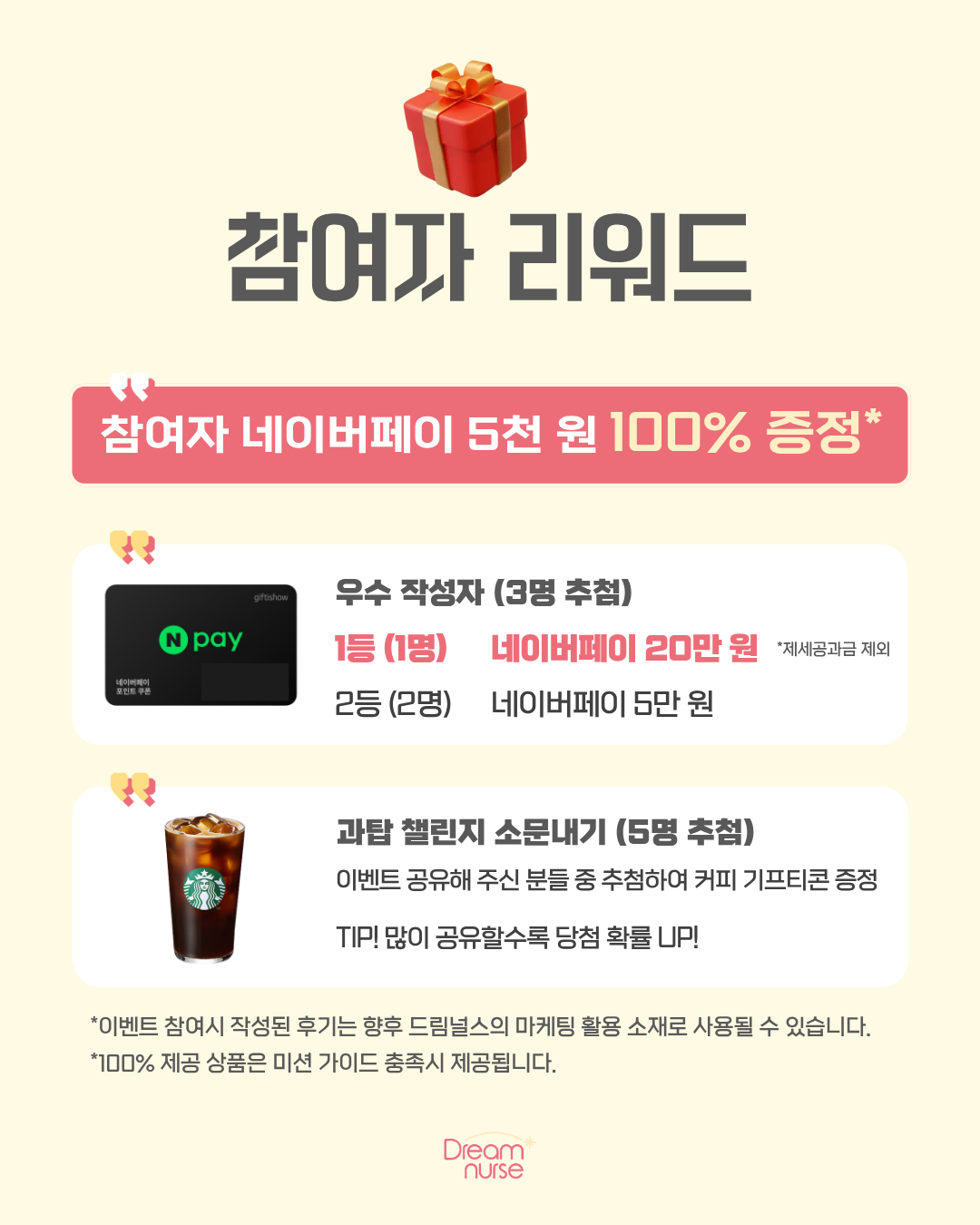 **이벤트 참여시 작성된 후기는 향후 드림널스의 마케팅 활용 소재로 사용될 수 있습니다.