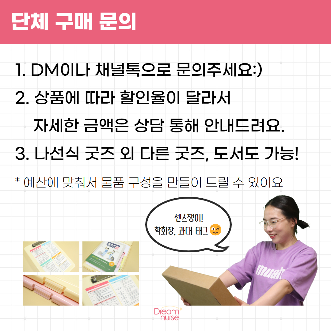 간호사의 꿈과 성장을 함께하는 드림널스의 굿즈를 단체구매하고 혜택도 받아가세요!