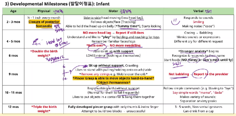 Child Health 참 범위가 넓다고 느껴졌지만, 어른들과 비교해서 아이들만의 다른 포인트들을 파악하고 정리하면 그다지 어렵게 느껴지지 않을듯 하다. 여전히 복습이 중요하겠고 더 짧게 정리를 해나가야겠다. 특히 각 질병의 증상과 치료법 알아두기 ** nursing intervention 잘 이해를 해야겠다.