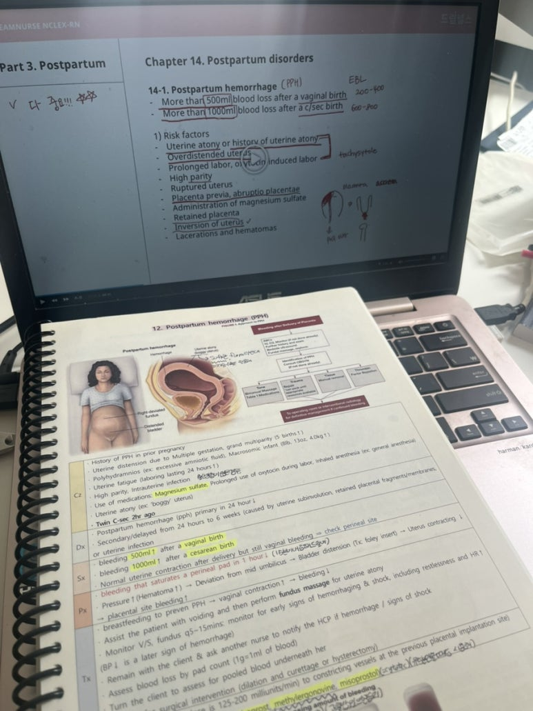 드림챌린지 블로그 첫번째로 산모파트를 선택했다. 임상에서 주로 성인만 봐왔기 때문에 산과 파트 관련해서는 전혀 직접 환자를 볼 케이스가 한번도 없었다. 전에 다녔던 병원에 산과 병동이 있기는 했지만 그곳은 아주 외딴섬처럼 어떤 일을 하는지 전혀 알수가 없었다. 이번에 공부를 하면서 어떤 증상이 생기면 어떤 질환인지 생각할 수 있고, 그 증상들의 정도에 따라서 응급상황 정도가 달라지는지도 알수있었다. 공부를 통해 임상에서 경험하지 못한것들을 간접적으로 경험할수있는 느낌이 들어서 좋았다. 진짜 드림널스 강의 선택을 잘한것같다는 생각이 드는게 해당파트의 전문가 선생님들의 이해하기 쉬운 설명과 다양한 경험들을 듣는게 너무나 공부하는게 즐겁다는 생각마저 들게된다. 앞으로 엔클렉스 공부해야할 여러 파트가 있는데, 다음에는 드림널스에서 어떤 선생님이 어떤 내용의 간호를 가르쳐주실지 벌써부터 기대가 된다. 그리고 엔클렉스 공부를 통해 영어를 다시 공부할수있는 기회가 생긴것도 의미가 있다. 엔클렉스 공부를 통해 간호학 지식과 영어까지 할수있는게 일석이조인 느낌도 든다. 임상에서 10년이상 몸담았지만 스스로 항상 부족하다는 생각이었다. 이번 드림널스 챌린지를 통해 스스로를 간호사로의 지식과 소양을 채워나가는 기회가 되길 바라고 있다!