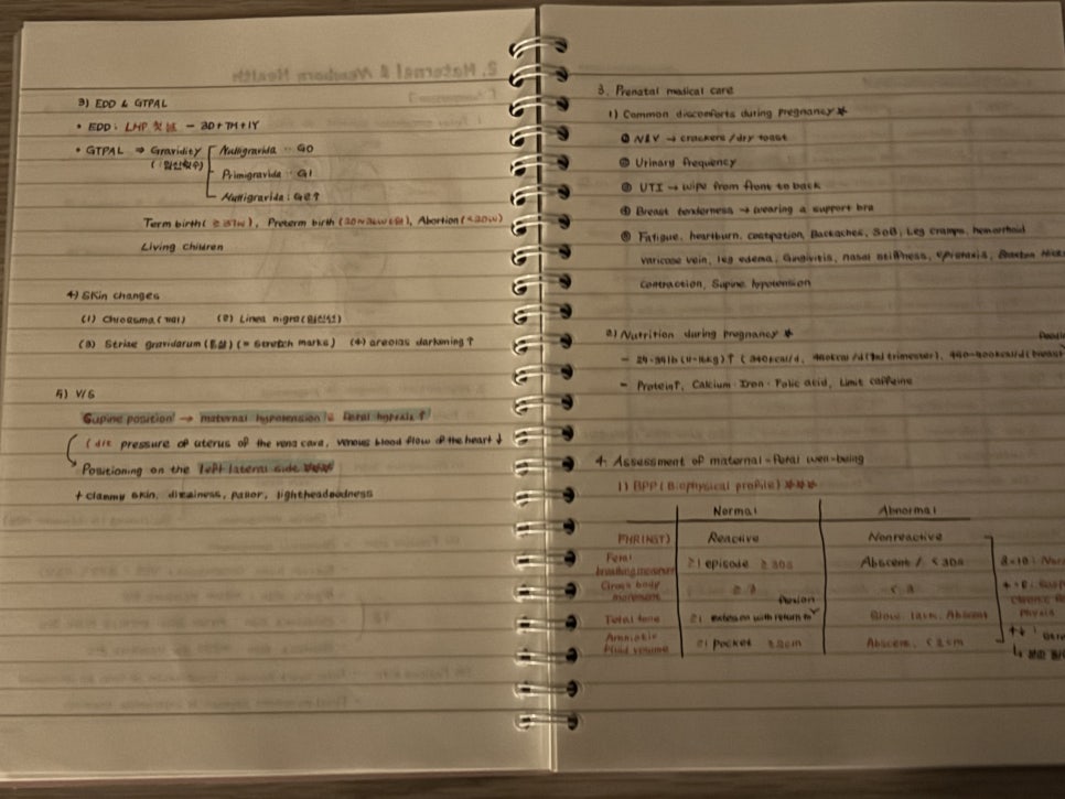 여러 개념 중 Maternal Antepartum과 Prenatal care & fetal well-being에 대해 알려드리겠습니다.