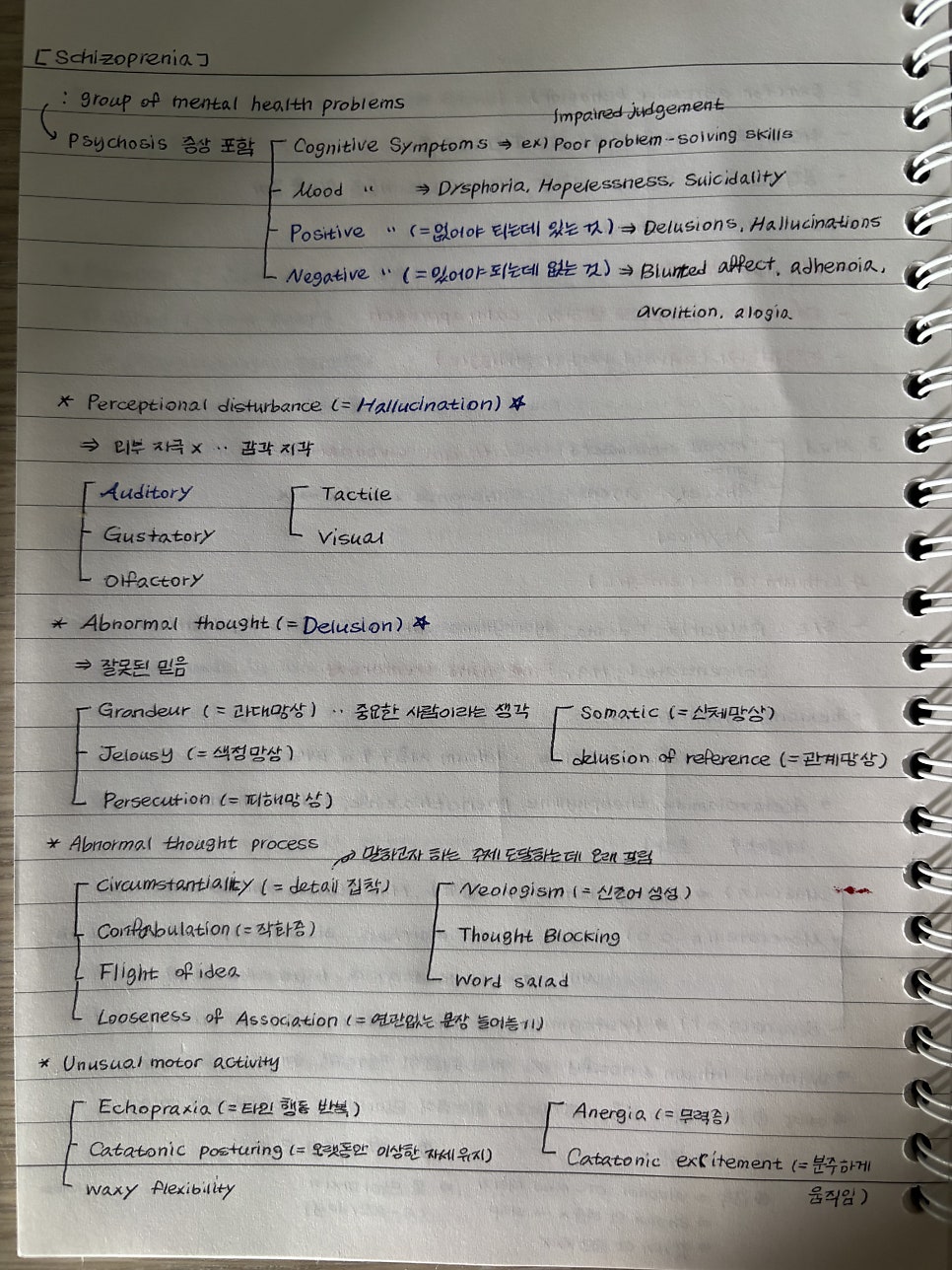 * positive symptoms(= 없어야 하는데 있는 것)
