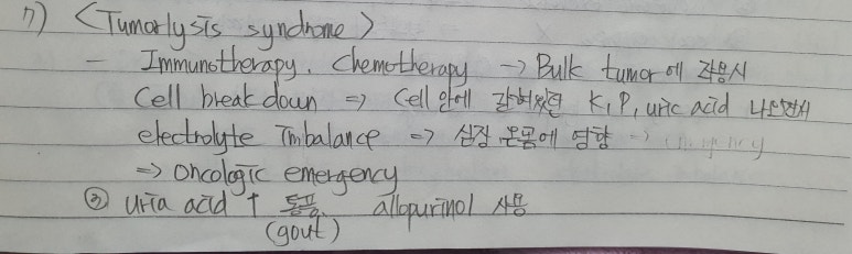 7번 문제, tumor lysis syndrome을 알고있어야 풀 수 있는 문제라고 생각할 수도 있다.