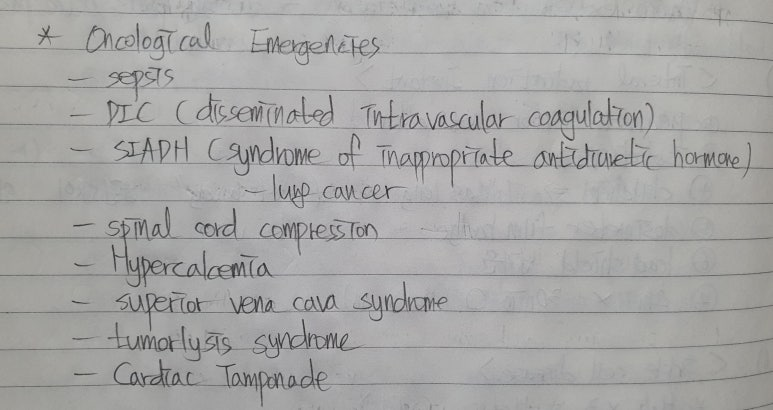 oncology emergency가 정확하게 어떤 항목이 있는지 알지 못한 상태에서는