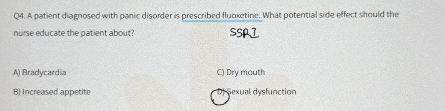 플루옥세틴 부작용 = D.sexual dysfunction