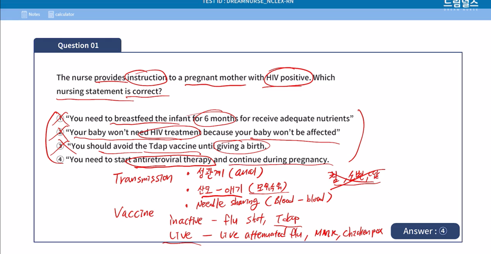 강사님께서 설명해주신 것처럼 inactive vaccine 의 경우에는 HIV 산모에게도 적용할 수 있는데 대표적인 것이 flu shot, Tdap 이 있습니다.