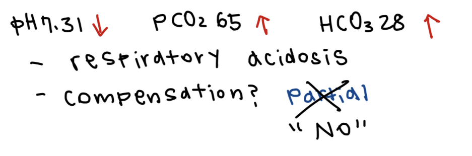 Partial compensate = pH towards normal but still outside the normal range