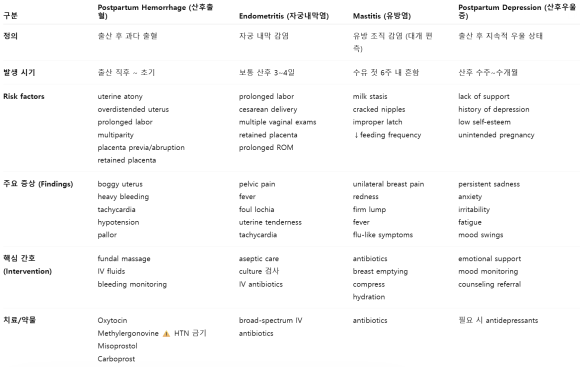 이번 주 Maternal 파트에서 Postpartum을 공부하면서 가장 크게 느낀 건, 출산 후 시기를 단순히 회복이라고만 보면 안 된다는 점이었어요! 생각보다 변화가 훨씬 많고, 그 안에서 정상인지 아닌지를 구분하는 게 더 중요하더라고요