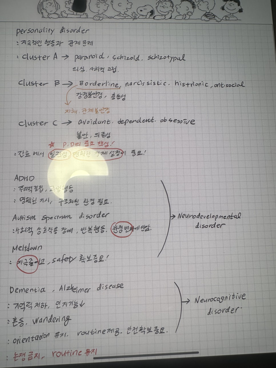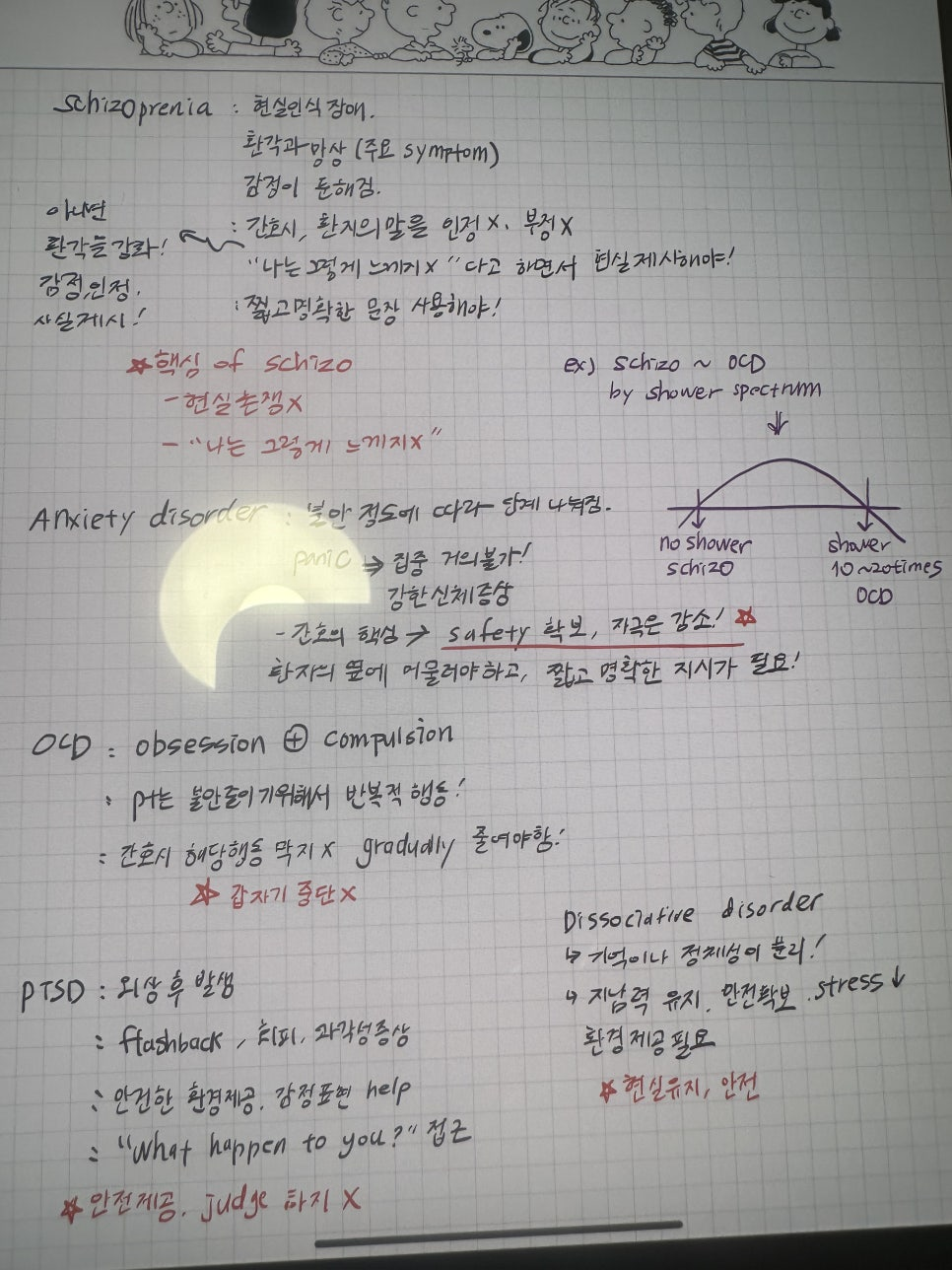 금주는 정신간호학의 mood disorders, schizophrenia, anxiety disorders, ocd, ptsd, dissociative disoreders, personality disorders, neurodevelopmental disorders and neurocognitive disorders 에 관한 부분과 아동간호학에 대한 내용이 시작되었다. 정신간호학은 사실 걱정이 되었던 부분이 우리나라 말로 배울 때도 용어에 대한 정의를 비롯한 뉘앙스 같은 부분들의 모호함에 대한 우려가 여전히 존재하였다. 이번엔 더 느낀 것은 아무래도 한국어로는 알고 있는 용어들과 영어와의 연결이 아직 익숙치 않다는 점이어서 이것에 대한 노력이 필요할 것 같다는 것을 느꼈다. 다른 과목들에 비해 영어보다는 한국어로 공부를 했던 분야였기에 이러한 어려움이 드러난 것이 아닐까 생각을 한다. 하지만 선생님께서 적절한 예시를 들어주시고, 잘 정리된 강의와 자료를 제공해주셨기 때문에 혼자 하는 것보다는 훨씬 그 어려움의 극복에 대한 가능성을 보았다. 남은 것은 이를 토대로 잊지 않게 복습하고 나의 것으로 만드는 것이 아닐까? 라는 생각이 들었다. 아동간호학은 학부때도 즐거워했던 과목이었고, 금주부터 새롭게 시작하는 과목이었기에 좀 더 가벼운 마음으로 공부를 할 수 있었다. 강의를 들으면서 방대한 부분들을 정리해주시는 강의와 교재, 임상에서 경험한 살아있는 예시들이 역시 효과적이라는 생각을 하였다. 특히 흥미롭고 도움이 된 부분은 선생님께서 자기가 외웠던 방법을 가르쳐주신 부분인데 제일 재미었던 것은 호빗과 스필버그에 관한 내용이었다.