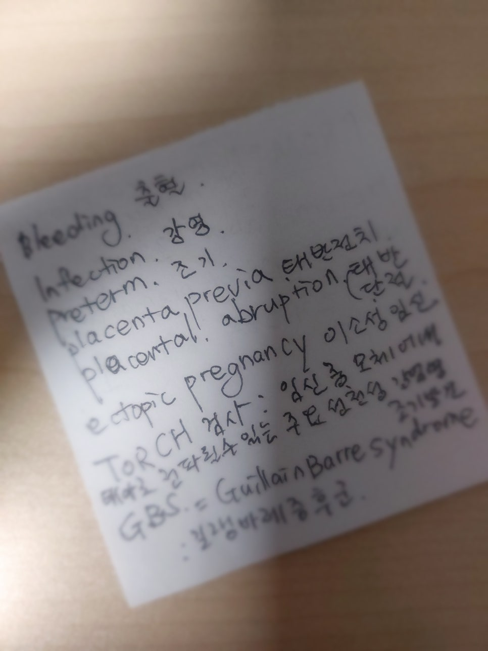 자연유산 파트에서는 단순히 “유산이 된다”가 아니라, 왜 발생하는지에 대한 원인을 같이 이해하는 게 중요했어요. 염색체 이상이나 자궁경부무력증, 자가면역질환처럼 각각의 원인이 다르고, 그에 따라 접근도 달라진다는 점이 인상 깊었어요. 특히 이 파트는 치료보다도 산모 교육이 굉장히 중요하다는 점이 계속 강조돼서 기억에 남았어요.