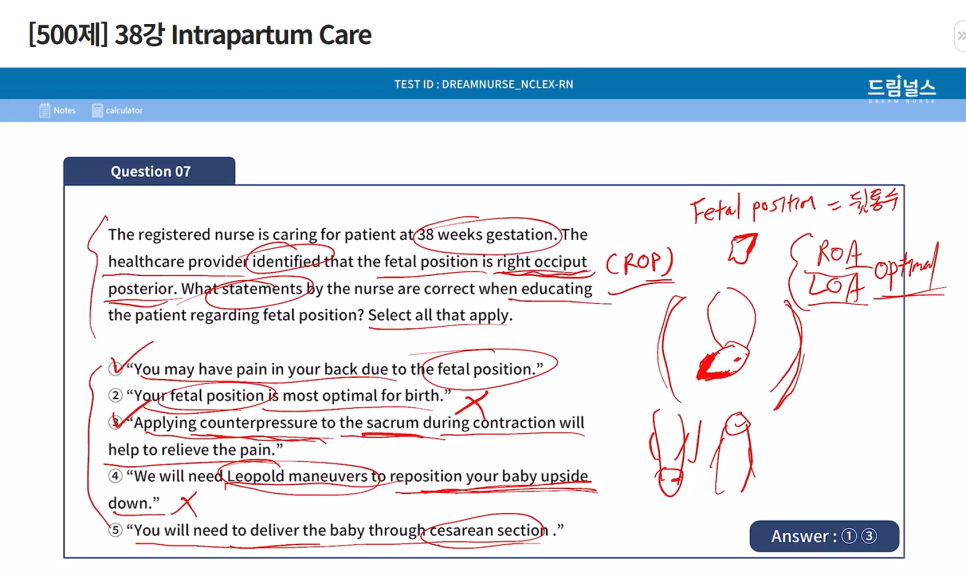 fetal position 과 관련된 문제였는데 보기 3번이 답이 되는지 알지 못해 SATA 문제 인데도 답을 하나밖에 고르지 못했습니다.
