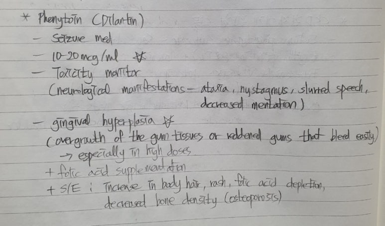 4. phenytoin 혈중농도는 "10-20 유지"해야하므로 lab (get blood drawn on a regular basis) 이 정기적으로 필요하다.