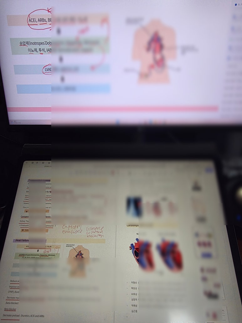 RAAS도 그림으로 다시 잡아주니까 ACEi/ARB가 왜 심장 보호로 이어지는지 연결이 확 되면서 이해가 됐고,