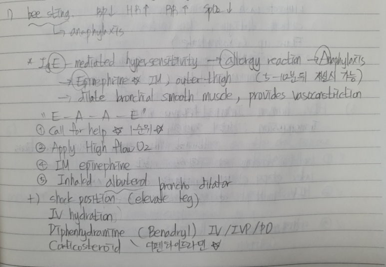불안, 호흡곤란, 저혈압, 피부 증상까지 이어지는 패턴을 기억해두니까 문제에서 바로 떠올릴 수 있었고요.