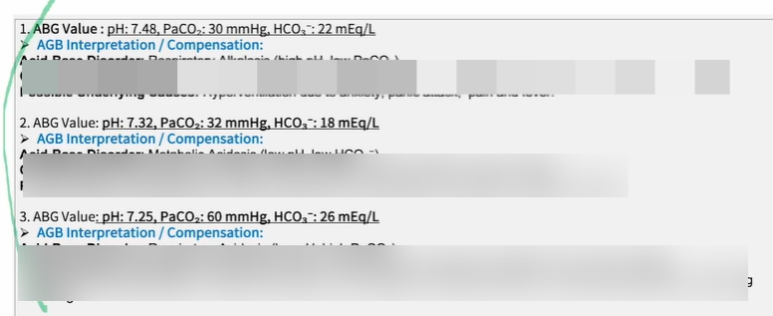 대게 명확하지 않고 사람마다 원인이 다르기에 반드시 ABGA 시행해야한다.