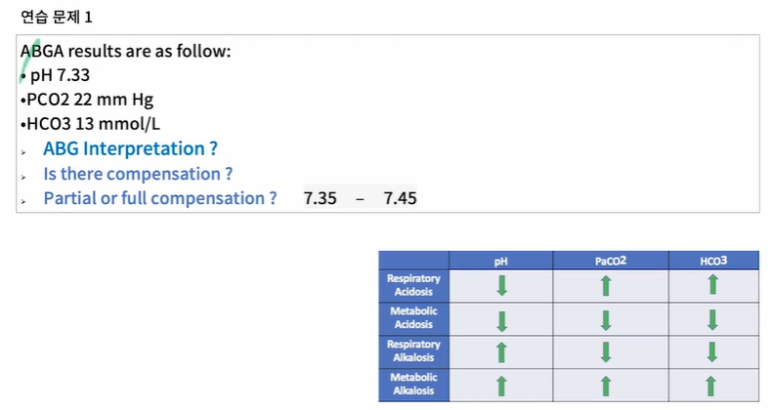 보상의 경우 PCO2가 낮기 때문에 보상이 되고 있긴 하나,