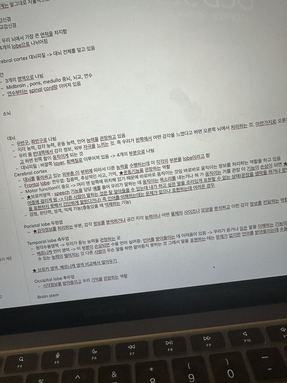 - The largest part of the brain; Right and left hemisphere 뇌에서 가장 큰 부분을 차지하고 우반구, 좌반구로 이루어져 있음